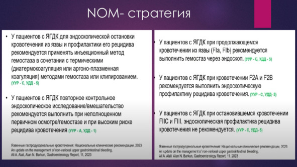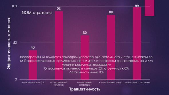 Принципы активного применения неоперативного гемостаза легли в основу NOM стратегии, лежащую в основе современного подхода к лечению ГДЯК.