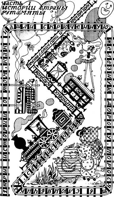 Скрюченный поезд шел по скрюченным рельсам и скрюченным шпалам, крюк за крюком, крюк за крюком, покуда очередной крюк не привел их в Печенка-с-луком-сити – самый большой город огромной-преогромной страны Рутамяты.