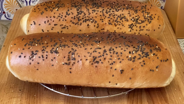 Ингредиенты:200 мл молока,200 мл воды,15 г свежих дрожжей или 5 г сухих,10 г сахара,8 г соли,2 ст. л. растительного масла,670 г пшеничной муки высшего или 1 сорта,кунжут для посыпки,яйцо для смазки заготовок.Масляная суспензия для смазки теста:Смешать 1 ст. л. растительного масла и 3 ст. л. воды.Приготовление
