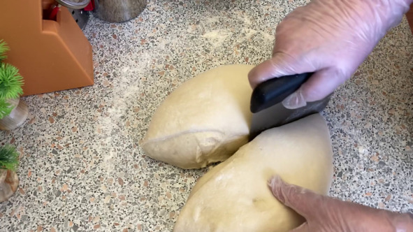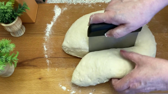 Так как теста по этому рецепту получается более 1,5 килограмм, для удобства делим его пополам.