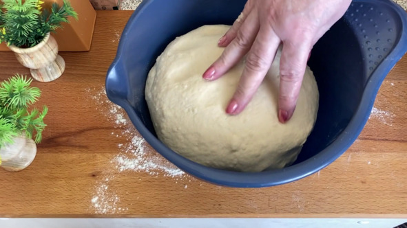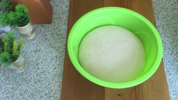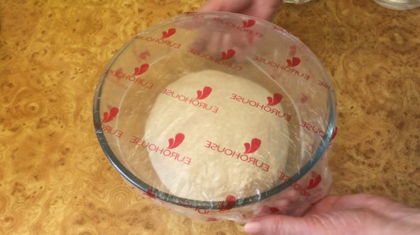 Накрываем тесто, чтобы оно не заветривалось и оставляем на расстойке примерно на 3—4 часа.
