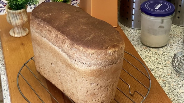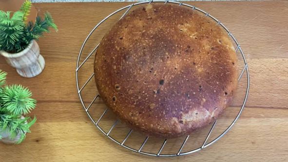 Хлеб освобождаем от формы, выкладываем на решётку и оставляем на решётке до полного остывания.