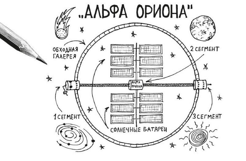 Около полудня он вышел на крыльцо и уселся на парапет. День выдался морозный. До конца уроков оставалось не больше двадцати минут, пятнадцать – на переодевание и дорогу. «Как раз успею дорисовать второй этаж», – подумал Мишка и достал из кармана жестяную коробку с карандашами. Толстую тетрадь формата А4 положил на колени. Быстро пролистал исписанные страницы, аккуратно разгладил чистый лист. Утром он успел зарисовать Землю, приветливо заглядывающую в иллюминатор, схему развернутого космического корабля с фермами, обходными галереями и солнечными батареями, план первого этажа первого сегмента.