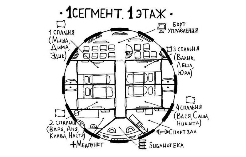 Дверь в медпункт открывалась вовнутрь. Точнее, не открывалась, а сдвигалась вдоль стены по нажатию на голубую кнопку. Она вела в узкий коридор. Медпункт находился в конце этого коридора. Напротив и справа – такие же двери. Первая вела в спортивный зал, вторая – в библиотеку. Столь громкие названия едва ли сочетались с тесными комнатушками, к которым они относились. Помещение спортзала зеркально отражало медпункт и с трудом вмещало беговую дорожку, велотренажер и небольшой силовой комплекс. Библиотека казалась еще меньше. Напротив входа вдоль круглой стены тянулся изогнутый стол. На нем – два компьютера, за ними – иллюминаторы. Стол был узким и напоминал скорее подоконник, чем полноценное рабочее место. Перед столом стояло два стула, сверху висели короткие узкие полки. На полках – книги, закрепленные специальными бортиками.