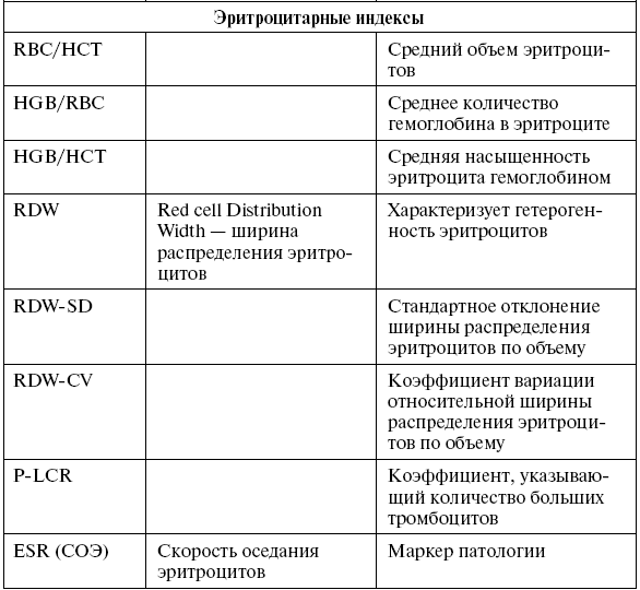 Обозначение основных показателей крови в современных гематологических анализаторах