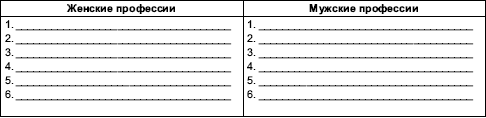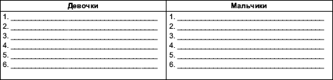 Занятие начинается с предложения заполнить диагностическую анкету (см. приложение), цель которой – выявить индивидуальные гендерные представления о «типично женских» и «типично мужских»: