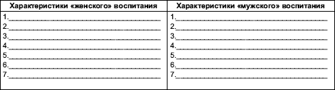 1. Каковы ваши собственные представления о женственности и мужественности, о присущих мужчинам и женщинам чертах характера и особенностях поведения?