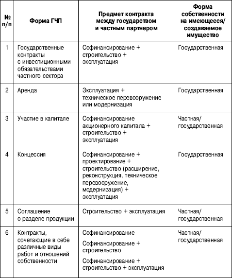 Основные различия между рассмотренными формами ГЧП могут быть систематизированы и представлены в виде таблицы (табл. 2).