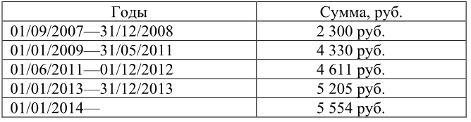 Размер минимальной оплаты труда в России за 2007-2014 гг.