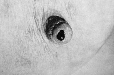 В ряде случаев вследствие прорастания опухоли в кожу развиваются ее истончение, покраснение и, наконец, изъязвление. При диффузных опухолях может наблюдаться выраженное расширение подкожной венозной сети молочной железы.