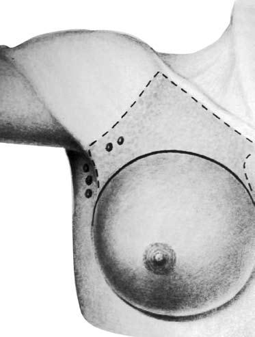 Рис. 16. Радикальная резекция молочной железы. Объем иссекаемых тканей (схема)