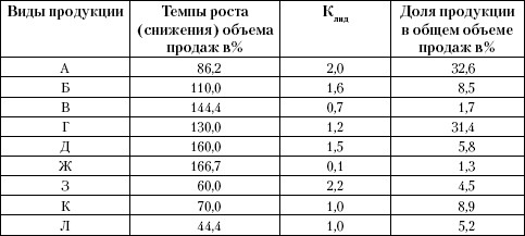 где Тi – темпы роста (снижения) объема продаж конкретного вида продукции; di – доля конкретного вида продукции в общем объеме продаж;