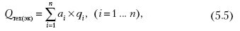 Групповой показатель (Q) рассчитывается на основе единичных показателей как сводный параметрический индекс (т. е. объединяющий единичные показатели по однородной группе параметров – технических, экономических) методом средневзвешенного: