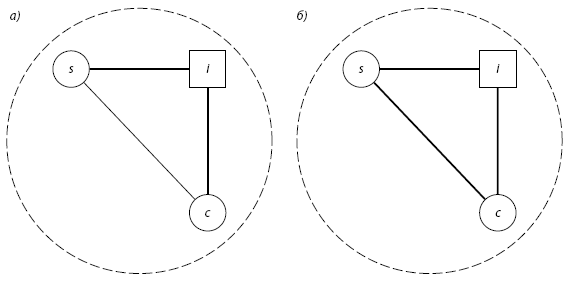 Диада — простейшая единица анализа сети, связь между двумя акторами, которая определяется типом взаимоотношений между акторами, зависящим в свою очередь от типа социальных отношений (рис. 2.1). Некоторые исследователи считают диаду компаний простейшей межфирменной сетью, другие при изучении сетей используют диаду только как единицу анализа, не признавая одиночную пару сетью (этой позиции придерживаемся и мы в данной монографии).