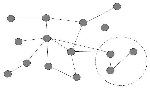 Группа может быть определена как совокупность всех акторов и их связей в рамках неких заданных границ, выделяющих эту совокупность. Определение границ является задачей исследователя и опирается на понимание целей и задач исследования, особенностей исследуемого объекта и характеристик той среды, в которой существует этот объект. Группа может исследоваться как самостоятельная сеть, или как один из элементов изучаемой сети, или подгруппа сети (в главе 1 мы обращали внимание на то, что положение о существовании подгрупп внутри сетей явилось одним из важнейших положений, выработанных социальными антропологами). Соответственно в последнем случае крайне важно также определить взаимоотношения между подгруппами в сети и подход с использованием подгрупп может облегчить исследователю изучение больших и сложных межорганизационных сетей. (К таковым относятся, в частности, отраслевые кластеры, где всегда выделяются подгруппы, в связи с чем ряд авторов предлагает рассматривать кластер как среду, в которой действуют различные межфирменные сети. В нашем понимании, однако, кластер является особым типом межорганизационной сети, единым структурным образованием, состоящим из тесно взаимодействующих подгрупп.) Пример подгруппы представлен на рис. 2.4.