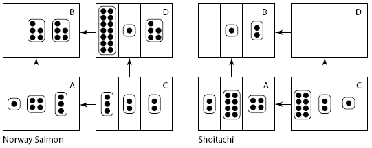 Рис. 2.5. Карты дотограмм для сетей дистрибуции рыбного рынка Источник: [Abrahamsen et al., 2012].