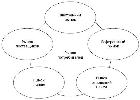 • внутренний рынок (индивидуумы и группы внутри организации, которые своими действиями и представлениями определяют стиль бизнеса);