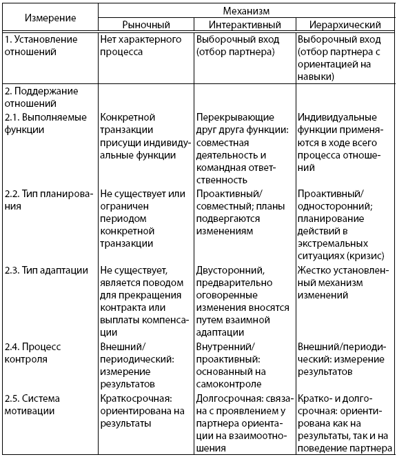 Механизмы координации процессов управления системой взаимоотношений компании с партнерами, соответствующие форматам этих взаимоотношений, представлены в табл. 3.3.