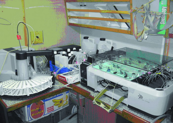 Одной из основных задач гидрохимических исследований в рейсе было протестировать анализатор SKALAR SUN++ в условиях судовой лаборатории (рис. 17). Несмотря на то, что прибор создан для эксплуатации в стационарных береговых условиях, первую пробу в экспедиции анализатор прошел успешно.