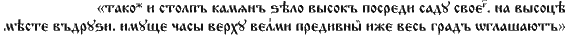 Об этом же сообщается и в житии Евфимия в перечислении его строительных предприятий: «також и столпъ камѧнъ ѕѣло высокъ посреди садϫ своег҃. на высоцѣ мѣсте въдрϫsи. имϫще часы верхϫ велʃми предивнӹ иже весь градъ ѡглашаютъ»* [ВМЧ, Март 1—11: л. 338d—339a].