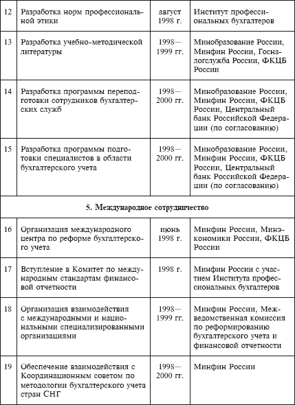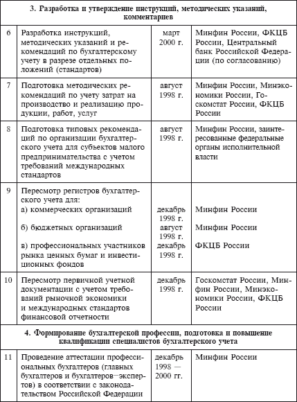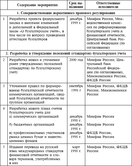 План конкретных мероприятий по указанным выше основным направлениям реформы бухгалтерского учета приведен в приложении.