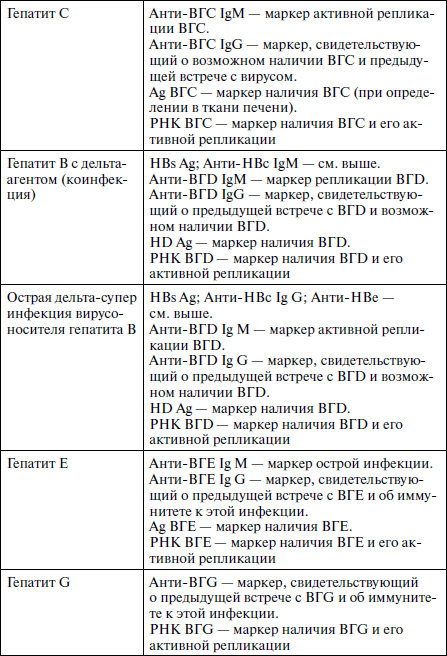 Основные диагностические маркеры вирусных гепатитов различной этиологии