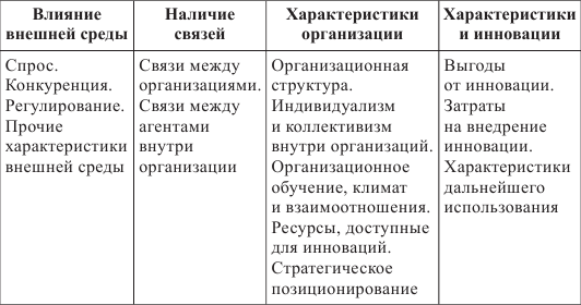 Таблица 1.10. Факторы, влияющие на внедрение инноваций