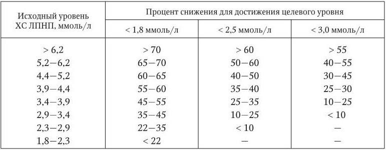 Снижение уровня ХС ЛПНП, необходимое для достижения целевого уровня (% от исходного)