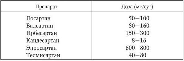 Поддерживающие дозы блокаторов рецепторов ангиотензина II, наиболее широко применяемых в клинической практике, представлены в табл. 1.14. Все препараты предназначены для приема один раз в сутки.