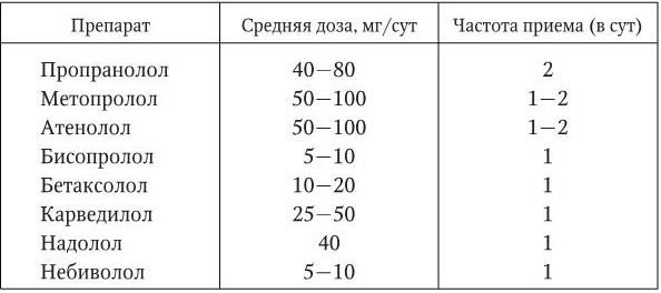 В табл. 1.15 приведены средние дозы и кратность приема β-адреноблокаторов, наиболее широко применяемых в клинической практике.