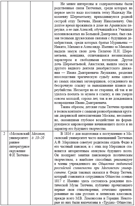 – сформировать навыки системного осмысления биографического материала, освещающего проживание Ф.И. Тютчева в Москве, значения московских эпизодов для творческой эволюции писателя;