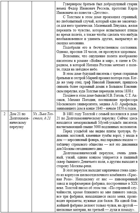 – сформировать навыки системного осмысления биографического материала, освещающего проживание Л.Н. Толстого в Москве, значения московских эпизодов для творческой эволюции писателя;