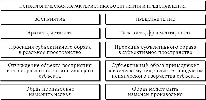 Психологическая характеристика восприятия и представления представлена на рисунке II.1.1.