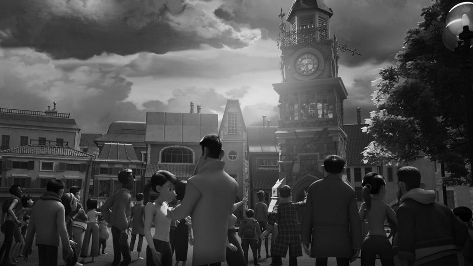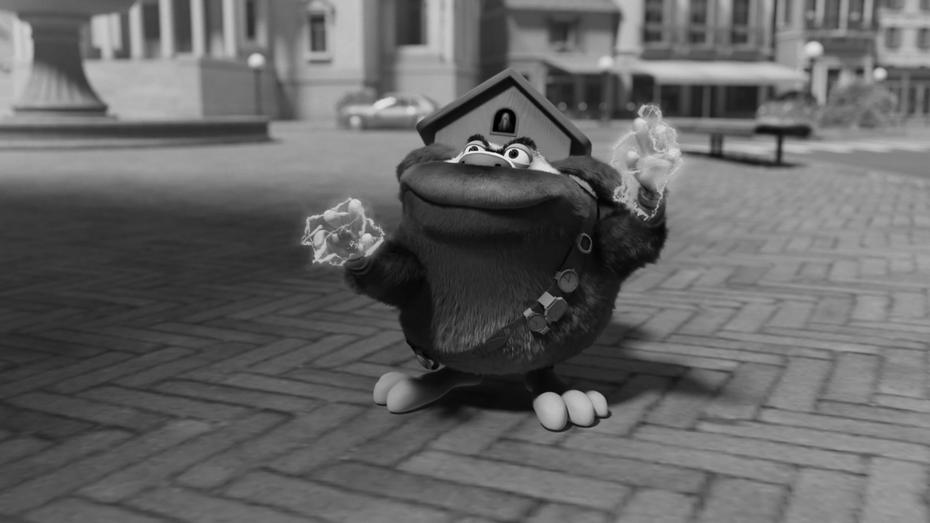 Погоня продолжилась. Незнакомый домовой петлял по улице и прыгал по машинам, но оторваться от преследователей никак не мог. Вдруг все они оказались на главной площади Берга, у заброшенной башни с часами.