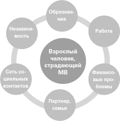 Рис. 1. Взрослый человек, страдающий MB: профессиональные и социальные проблемы