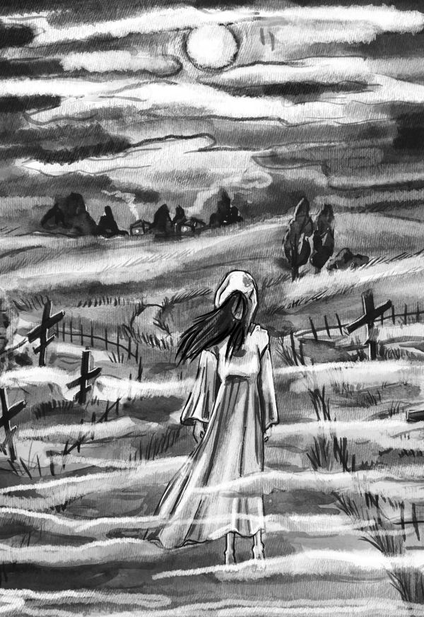 А конь дрожит, с упряжи рвётся. Посмотрел Илья на завалившуюся кладбищенскую ограду, на проступающие в темноте покосившиеся могильные кресты, и жутко ему стало. Потом вспомнил, что казак он, и отец его был казак, и дед, взял ружьё и слез с телеги. Сделал шаг к чему-то белому на дороге, неизвестному. Выругался вслух, не сумев вспомнить ни одной молитвы, и взвёл курки ружья. А это существо, или не существо вовсе, возьми да и тихонько так пойди к казаку.