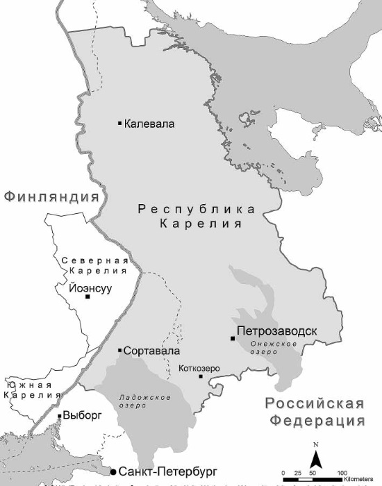 Специфической чертой, отличающей Республику Карелия от других регионов России, является ее расположение на границе. Фактор влияния Финляндии – тема первой части настоящей книги, в которой проводится анализ ведущихся в Карелии дискуссий в отношении финской этничности, границы и проблематики приграничного региона. В советское время в Карелии финский язык был официальным языком, и он по-прежнему является важным языком для многих жителей республики не только с точки зрения культурного наследия, но также и трансграничных связей. В своей статье Ольга Давыдова-Менге анализирует статус финской культуры, особенно в сфере СМИ и образования. В Петрозаводске уже с 1920-х годов выпускается газета «Karjalan sanomat», название которой много раз менялось на протяжении десятилетий, а также журнал «Carelia» в бумажном формате. Кроме СМИ, настоящее бурление вызвал также вопрос о статусе финского языка в школах, поскольку объемы его преподавания на разных основаниях были сокращены и дальнейшее использование финского языка не является гарантированным, даже несмотря на его прочную культурно-историческую базу в Карелии. По мнению местных финнов, с точки зрения культуры, финский язык по-прежнему играет более важную роль по сравнению с карельским языком, и этим частично объясняется желание использовать его и в дальнейшем на территории РК.
