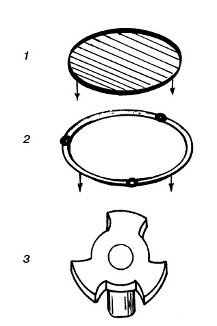 Рис. 9. Вращающийся поднос (1), роликовая подставка (2) и муфта (3), насаженная на вал (4)