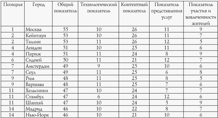 Таблица 2. Индекс электронного правительства в крупных городах6