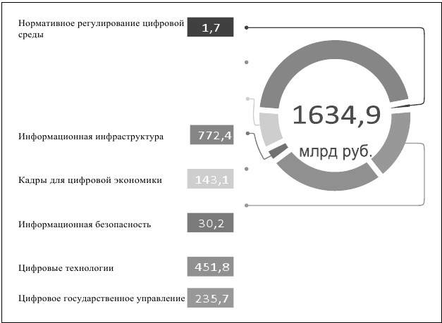 Новый этап институциональных реформ в сфере государственного управления связан с реализацией Программы «Цифровая экономика Российской Федерации», которая приобрела статус национального проекта с планируемым объемом финансирования свыше 1,6 трлн руб.