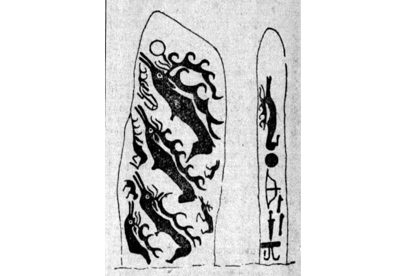 «Оленный камень» Иркутского областного музея. Изображения на передней и боковой сторонах плиты.