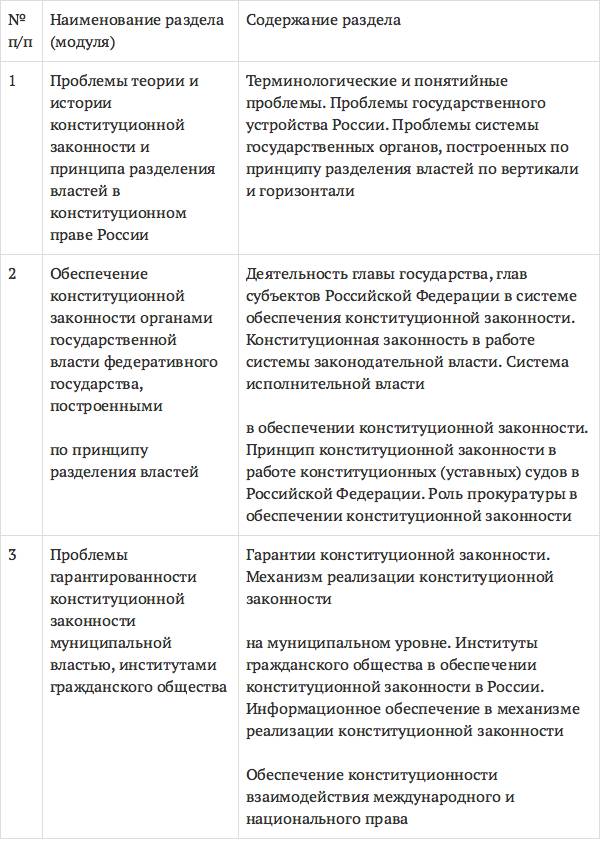 – основные институты, закономерности развития и проблемы реализации конституционной законности, принципа разделения властей, участия институтов гражданского общества в их реализации; основы правовой культуры и принципы профессионального мышления современного юриста;