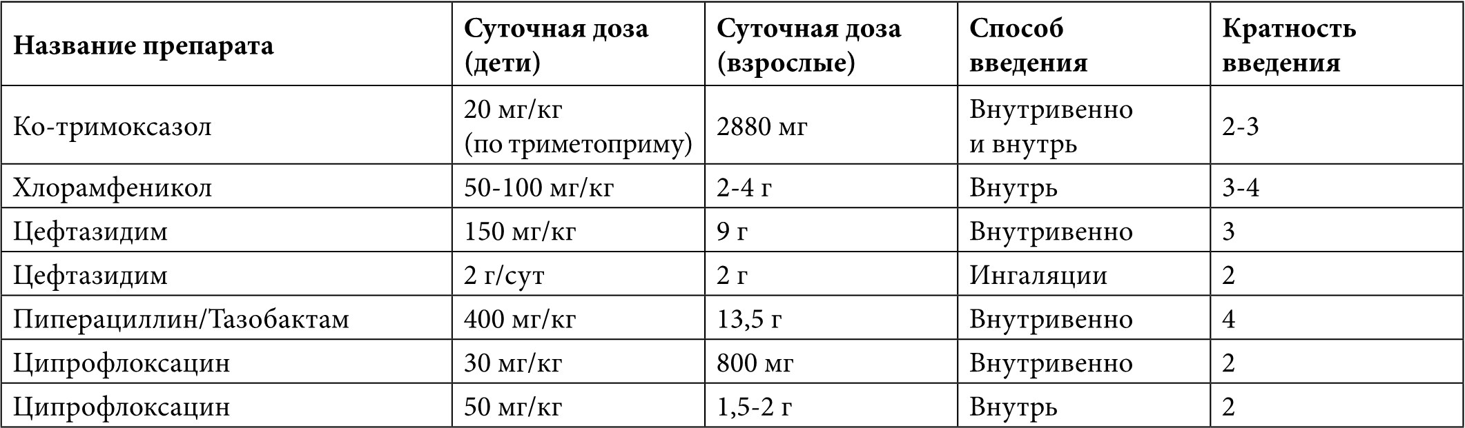 Таблица 5. Антибиотики, применяемые при высеве Burkholderia cepacia complex, Achromobacter xylosoxidans
