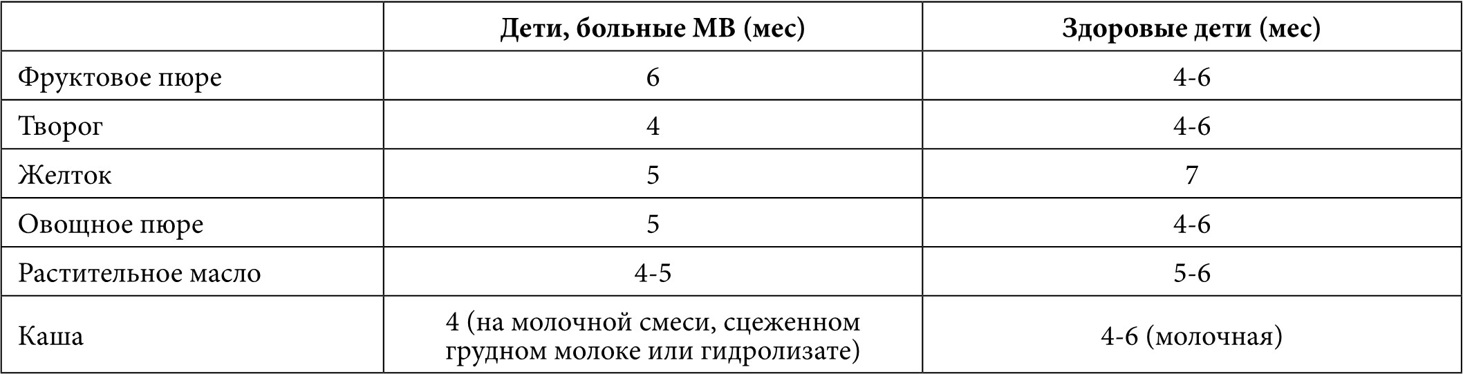 Таблица 2. Особенности введения прикорма детям первого года с муковисцидозом [23]