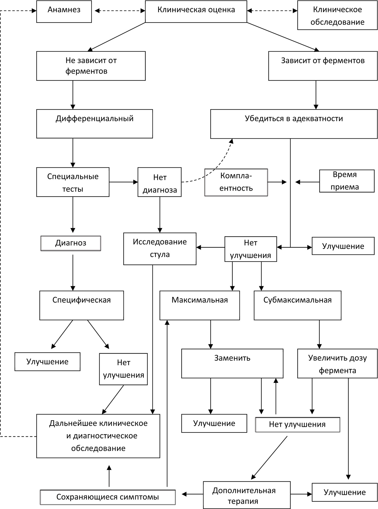Рисунок 1. Алгоритм действий при не поддающейся традиционной коррекции внешнесекреторной недостаточности поджелудочной железы