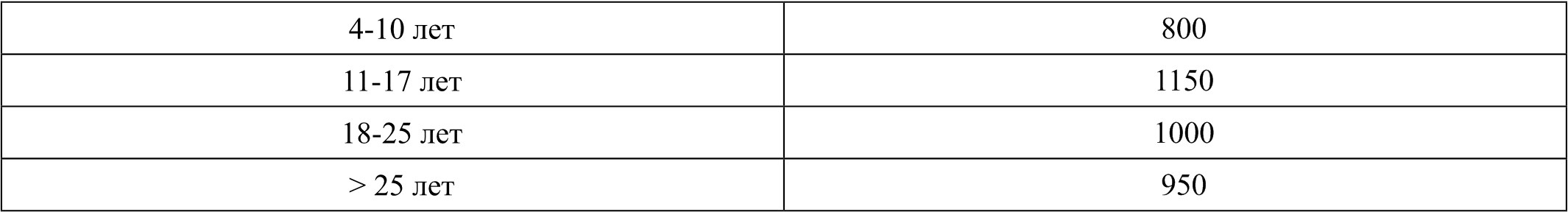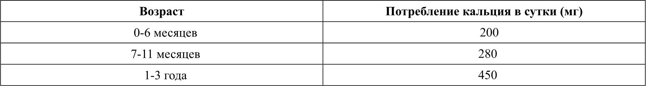 Таблица 2. Суточные нормы потребления кальция [23, 24]