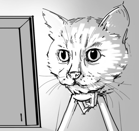 В общем, я закончил девятый класс, когда год назад начал писать. Тогда же нашёл для себя нескольких современных писателей-фантастов, чьё творчество запало в душу и пока что остаётся там. У меня было много свободного времени, и я писал что-то похожее на то, что любил читать. Но с началом нового учебного года я об этом мог только мечтать – свободное время кончилось, а все незаконченные работы были отложены мной в долгий ящик. И сейчас я пишу только на каникулах, поэтому, если бы у меня было портфолио, оно состояло бы из одного крошечного рассказа… Про «Василия Кузьмича», кота, устраивающего на работу своего хозяина (см. иллюстрацию)…