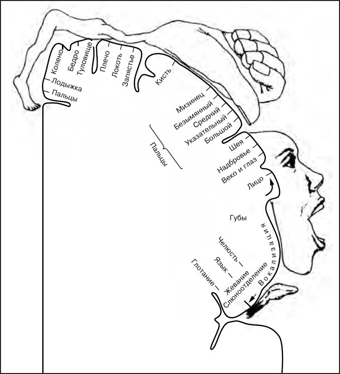 Рис. 1.1. Карта моторной зоны коры больших полушарий мозга