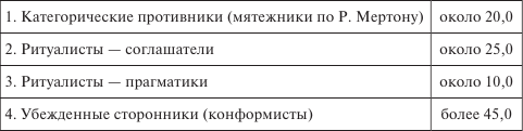 В целом к группе «ритуалистов» (по Р. Мертону) можно отнести около трети респондентов исследования.