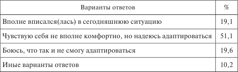 Наибольшее количество респондентов адаптированы средне. Каждый четвертый адаптируется с трудом. И лишь единицы совершенно не приспособлены.